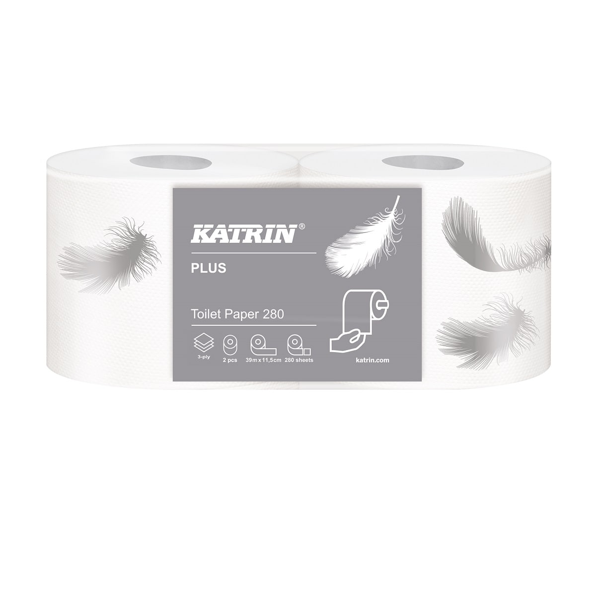 Laadukas ja vahva 2-kertainen Katrin Plus 280 wc-paperi. Imukykyinen ja pehmeä käyttää. Sopii erityisesti vaativiin julkisiin tiloihin.